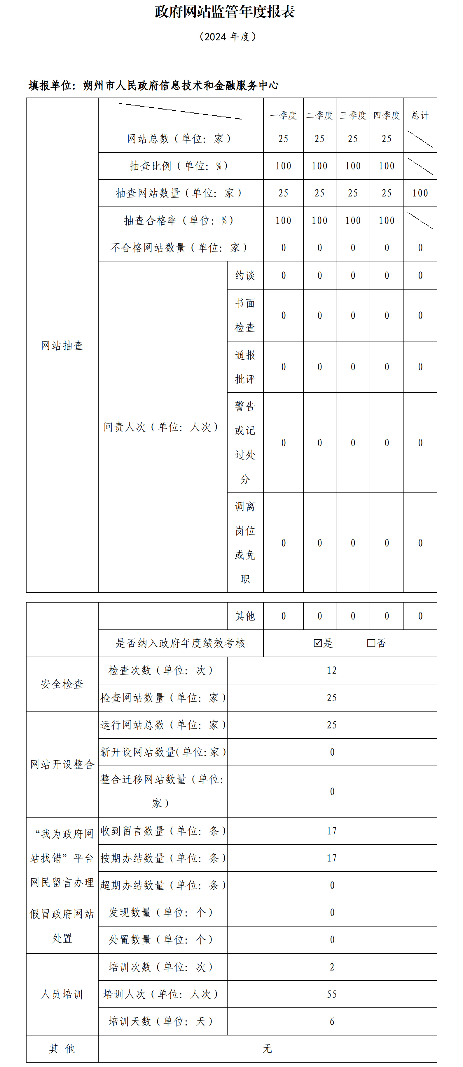 。朔州市政府網(wǎng)站監(jiān)管年度報(bào)表(2024年度)。。!