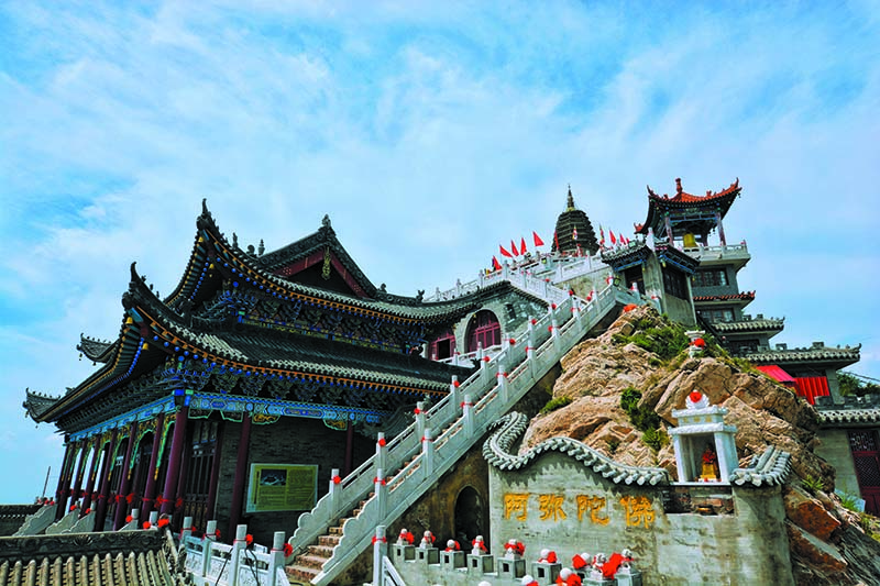 勝境清涼山山勢(shì)陡峭,峰巒疊嶂?!耙ú槐M的鍋頭缽兒水”、“早種晚收的紅糜子地”……數(shù)不清的傳說和故事在清涼山縈繞。不知何時(shí),一尊彌勒大佛現(xiàn)身于山腰之處,大肚笑顏,神態(tài)悠然,仿佛在為世人緩緩講述著這里神奇迷人的一幕一幕,讓人早已忘卻置身何處,惟覺身心清涼,再無煩擾。