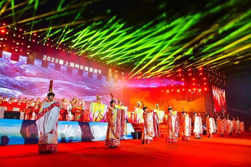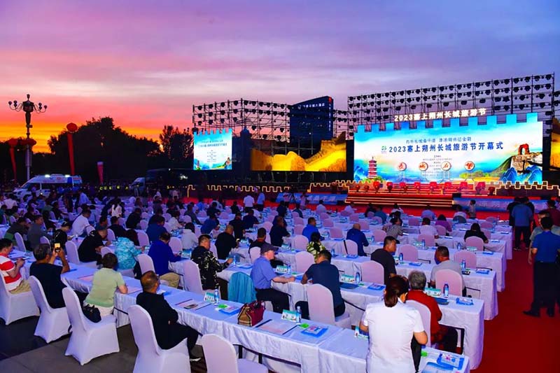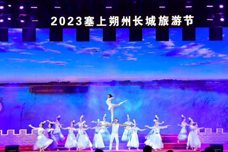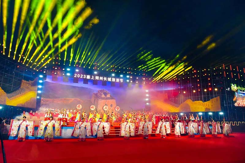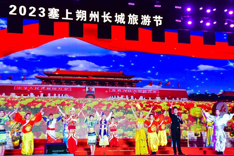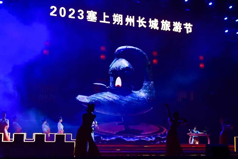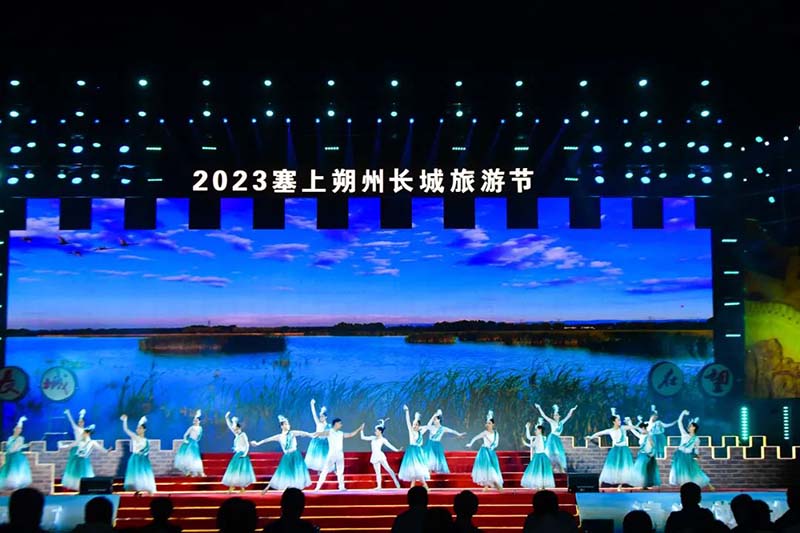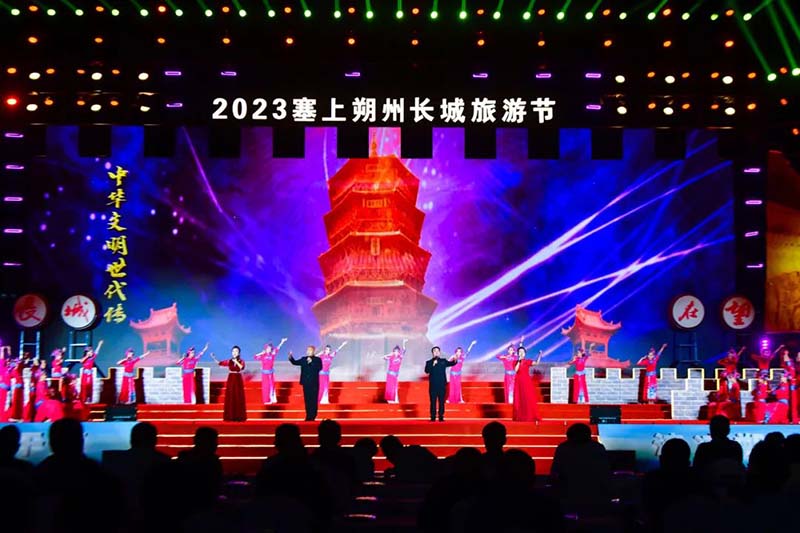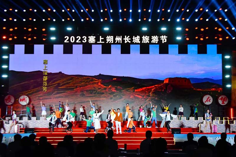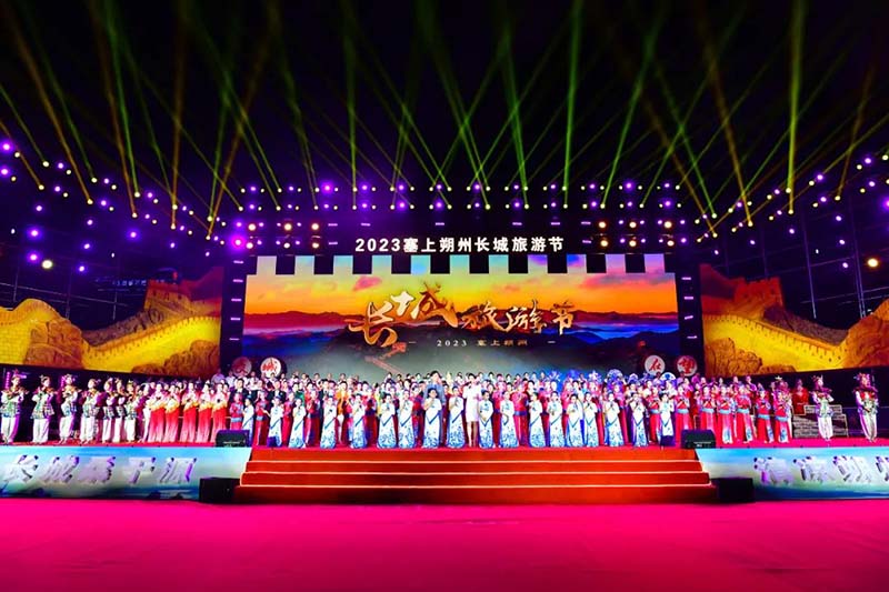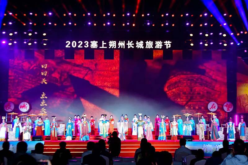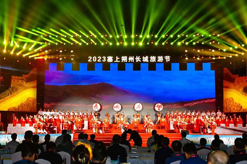 2023塞上朔州長城旅游節(jié)以朔州深厚的歷史文化底蘊為支撐,分為長城在望、桑源溢彩、綠都芬芳三個篇章。在開幕式現(xiàn)場,伴隨著激昂的大型鼓樂,合唱《廣武浩歌》正式拉開帷幕,歌舞《歲月長城》《雁魚燈》,女聲獨唱《人說山西好風(fēng)光》《來跳舞》,舞蹈《昭君出塞》《朔風(fēng)頌》等文藝節(jié)目依次上演,讓觀眾深深沉醉其中。?