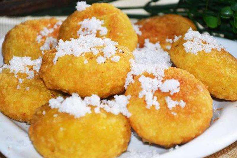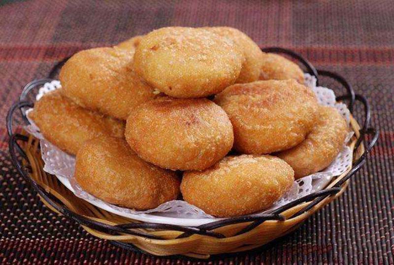 油糕,是以黃米(即軟黍米面)為皮,糖料或棗泥、豆沙等為餡,經(jīng)油炸制而成的食品,特點(diǎn)是柔軟、黏性大、外焦里嫩、黃中發(fā)紅、紅中透亮、美味可口。因“糕”與“高”諧音,為取其步步登高、吉祥富貴之意,人們往往在逢年過(guò)節(jié)或婚喪嫁娶、孩子滿(mǎn)月、日壽誕、起房蓋屋時(shí)食之。多年來(lái),油糕伴隨著人們送舊迎新、慶賀道喜,成為朔州人民喜愛(ài)的傳統(tǒng)食品。