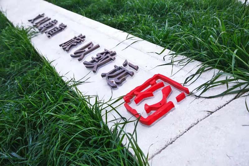 雕塑背光面的材質(zhì)選用滄桑的紅砂巖,題有毛澤東主席的手書詩詞《臨江仙·給丁玲同志》及朔州代表性景觀,同時,為了增強互動性和趣味性,雕塑設置有二維碼,參觀者可掃碼互動,獲取和顯示相關的背景資料。