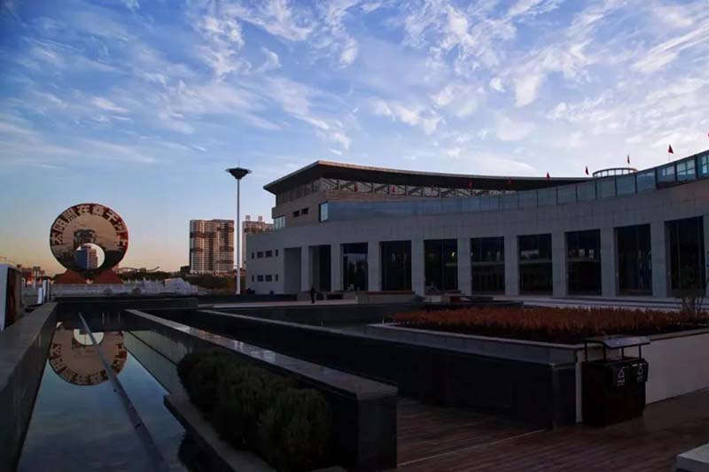 而“活化”當然還表現(xiàn)在展示方式上,雕塑的建筑手法別出心裁,雕塑的兩面融現(xiàn)代科技與當?shù)匚幕谝惑w。迎光面運用鏡面白鋼材質(zhì),鏡面與自然天空景色融為一體,顯現(xiàn)出不同時段的壯麗景觀,打破了靜態(tài)主題雕塑的藝術展示方式。